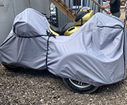 Заказывал чехол для мотоцикла Harley Davidson Tri Glide с вырезом под антенны, чехол оказался отличного качества, сшит аккуратно, материал плотный и прочный. Установка на мотоцикл заняла совсем немного времени. Очень доволен покупкой!